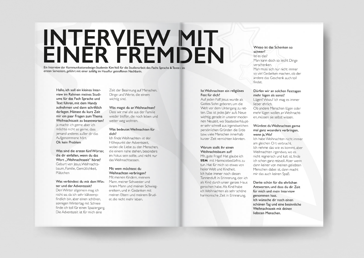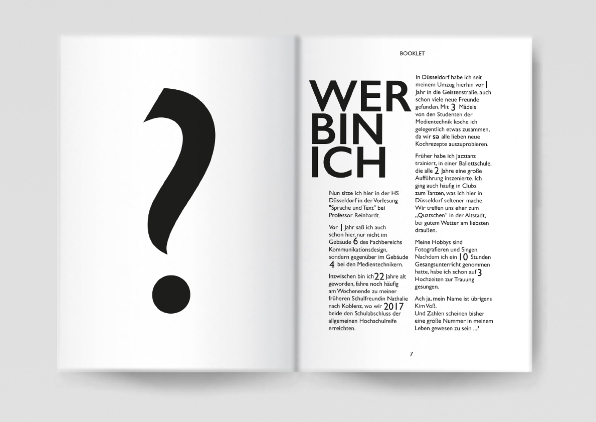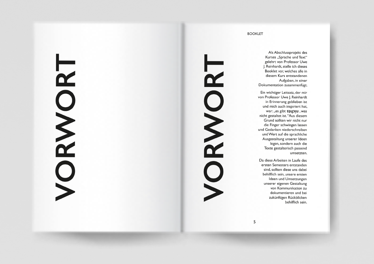 Als Abschlussprojekt des Kurses „Sprache und Text“ gelehrt von Professor Uwe J. Reinhardt, stelle ich dieses Booklet vor, welches alle in diesem Kurs entstandenen Aufgaben, in einer Dokumentation zusammenfügt.